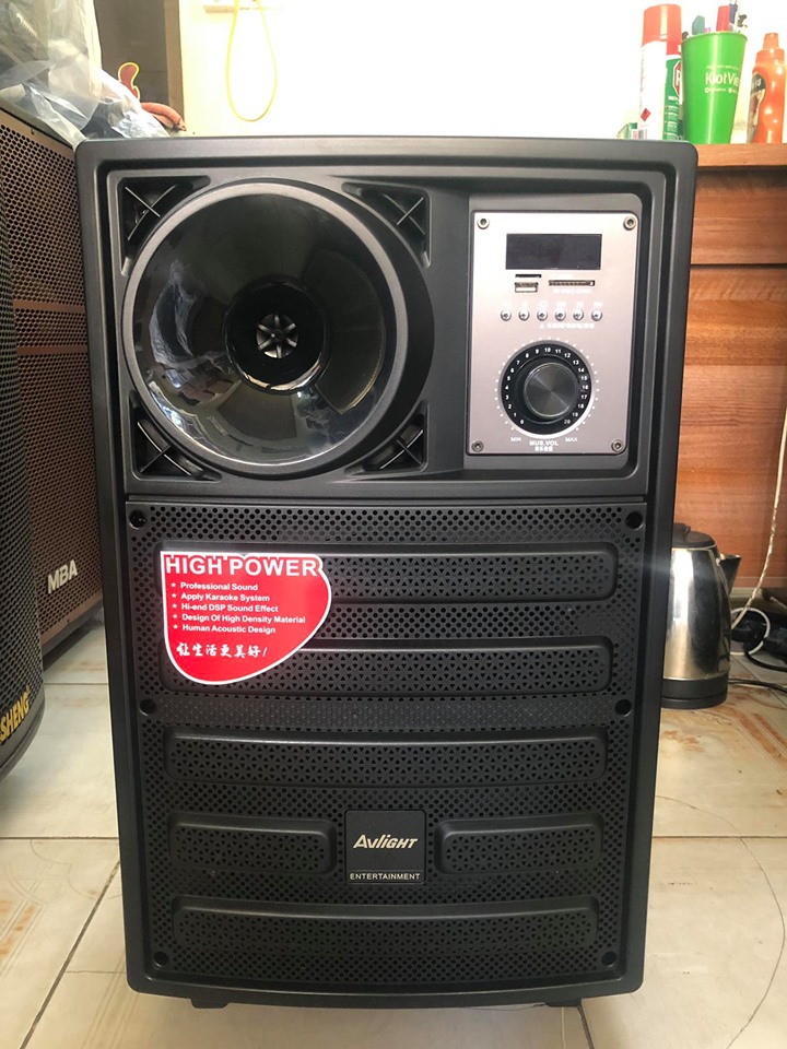 Mặt trên ở phía sau của loa còn có một nút nguồn, một cổng sạc với dòng điện 220V, jack 3.5 mm cho xuất âm thanh từ thiết bị khác ra loa và một cổng đấu bình acquy 12V. Thời lượng bình của loa kéo dài từ 4-6 tiếng (tùy theo công suất người sữ dụng), ngoài ra loa còn có khả năng đấu bình với bình acquy 12V. Đi kèm với loa còn có một cặp micro có độ hút có khá cao, hứa hẹn sẽ cho người dùng một trải nghiệm.