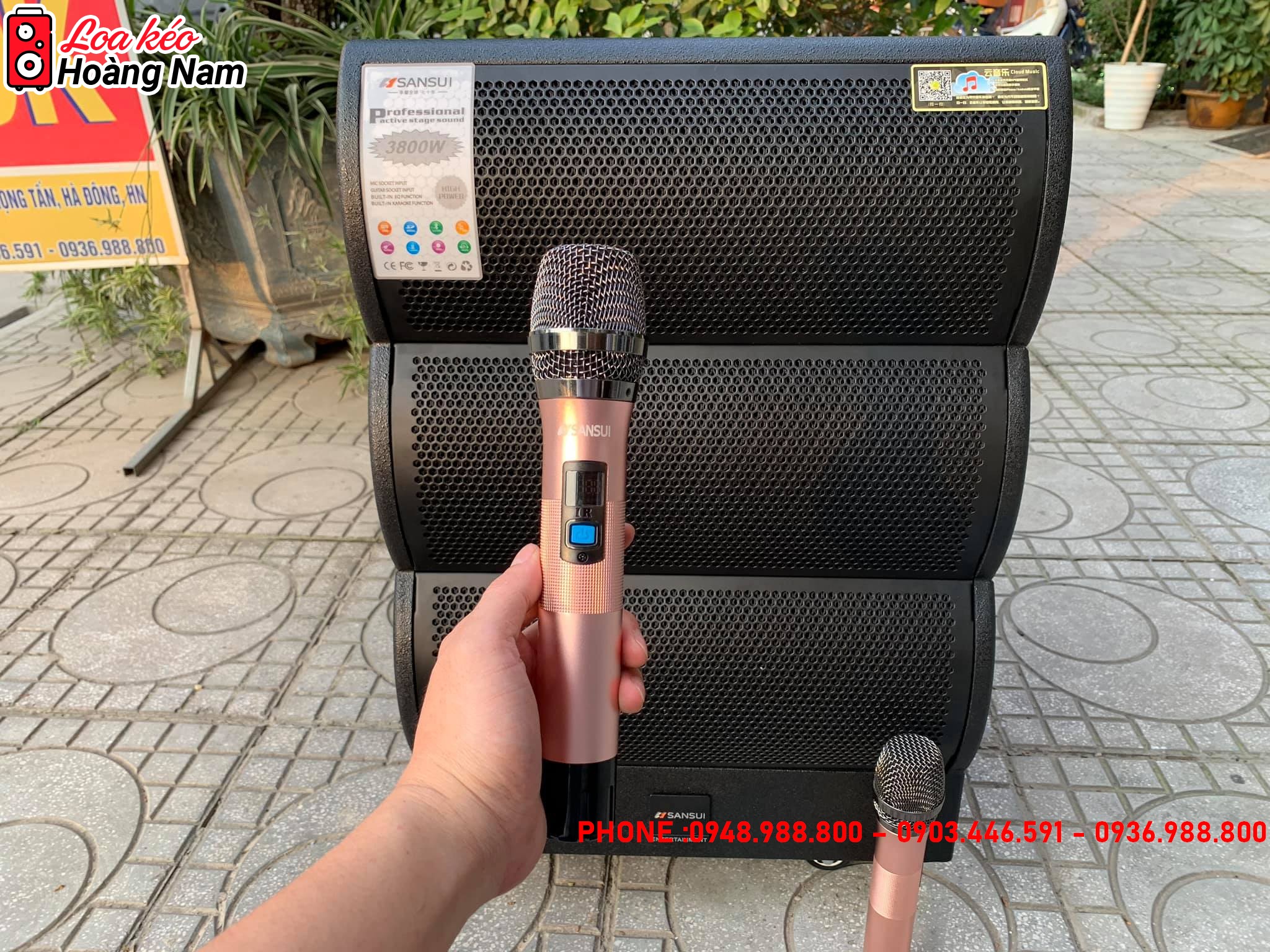 Micro của loa kẹo kéo Sansui sg5-15 (SG5-15) là loại micro cho ra tiếng nhẹ và hay vang bổng cùng với nhiều chức năng khác như đổi tần số, tiết kiệm pin, tăng giảm độ hút. Kết hợp giữa loa và micro sẽ cho quý khách 1 trải nghiệm về loa kéo Sansui SG5-15 chất đến từng nốt nhạc.