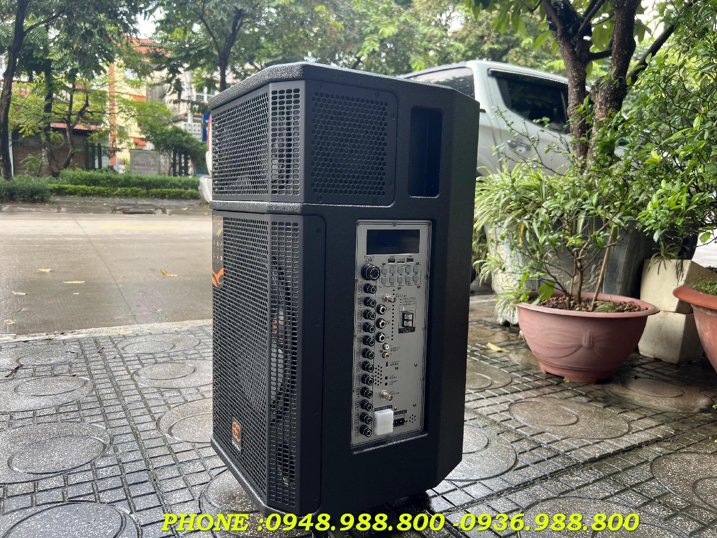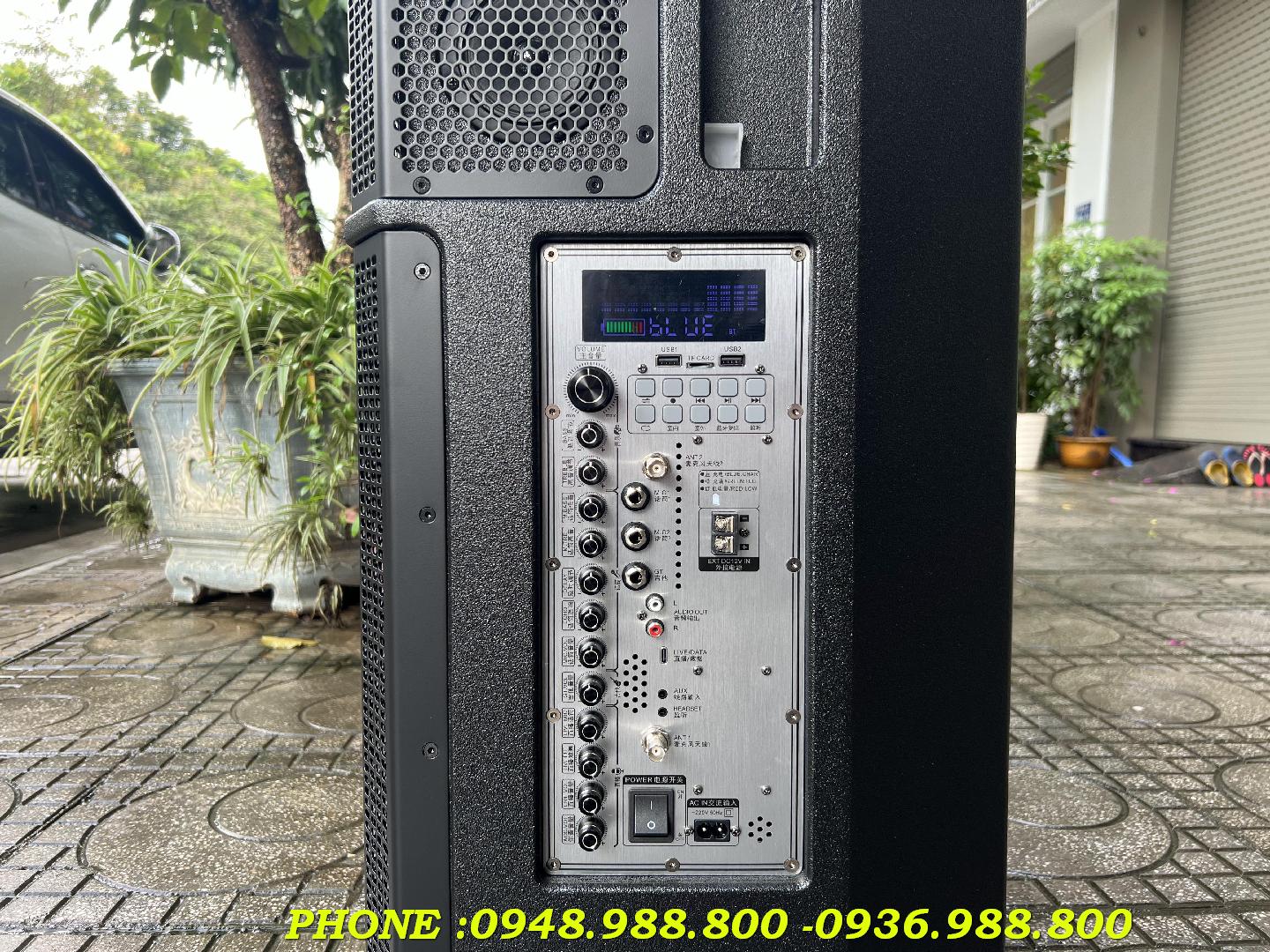 Mặt trước là hệ thống củ loa được bảo vệ an toàn với lớp màng lưới cao cấp, bảo vệ loa khỏi va đập khi vận chuyển, khe lưới nhỏ giúp thoát âm và hạn chế bụi bám từ bên ngoài. Bảng điều khiển được bố trí ở mặt bên của loa thuận tiện và khoa học giúp người dùng điều chỉnh, kiếm soát thiết bị.