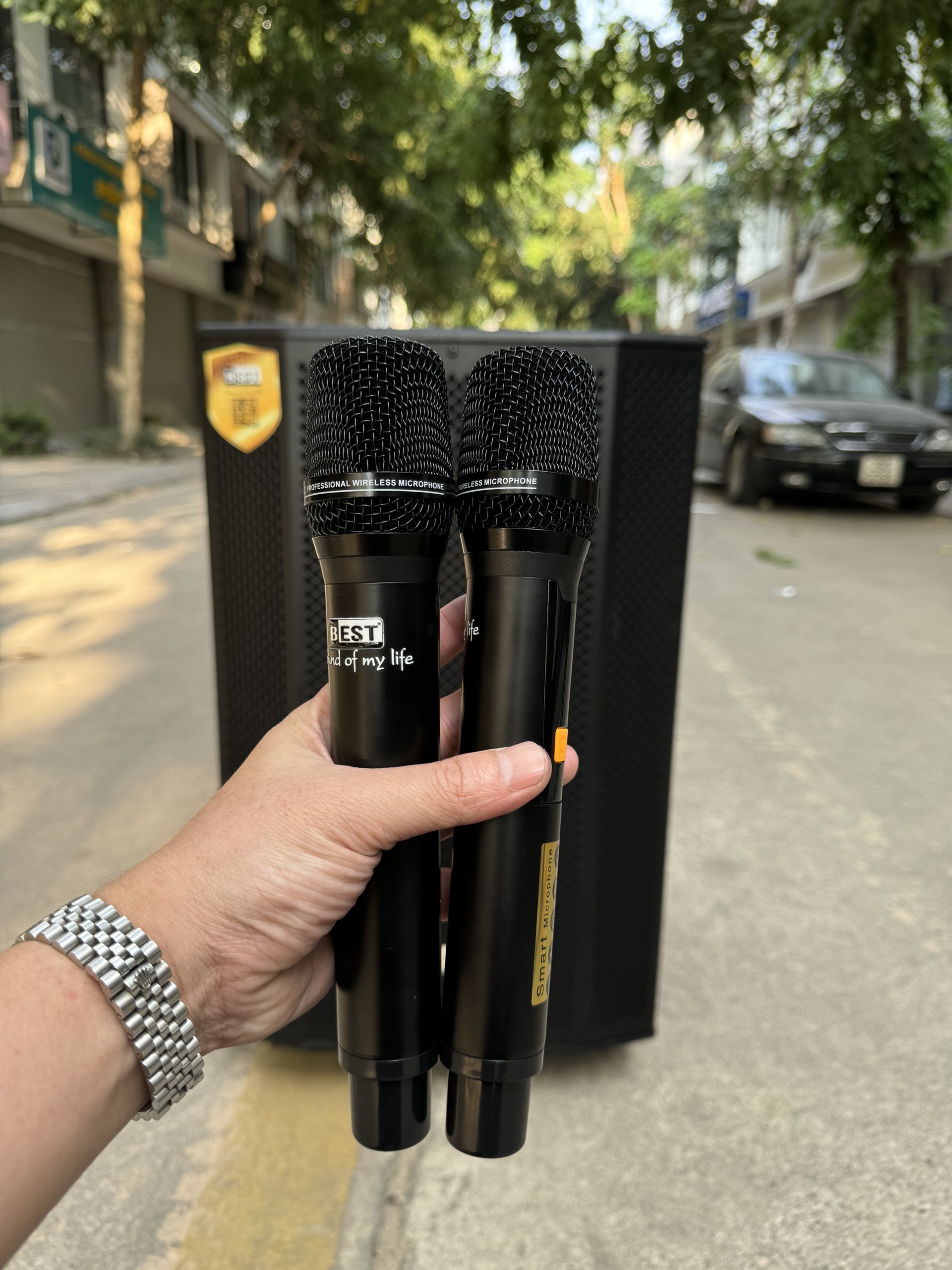 Đi kèm 2 micro không dây UHF độc quyền của nhà best cho ra chất âm vô cùng tốt và ít tạp âm.