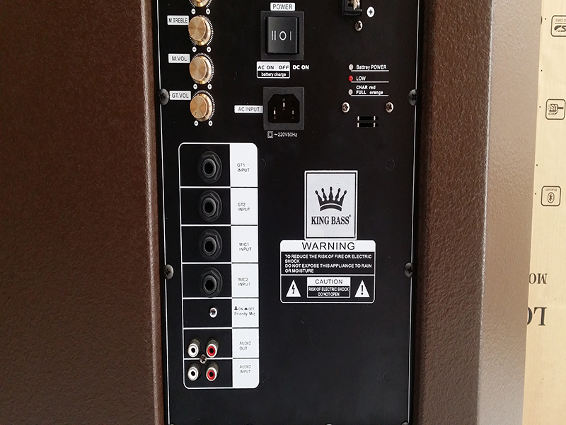 Với vỏ ngoài được làm từ chất liệu gỗ cao cấp nguyên khối phũ bên ngoài là một lớp sơn bóng màu nâu đất, loa kéo KingBass BN1839 tạo cho người dùng một sự an toàn tuyệt đối về độ bền và tuổi thọ của loa và đặc biệt là chất âm ấm áp thêm vào đó là tính chuyên nghiệp cao cho chủ nhân của loa.
