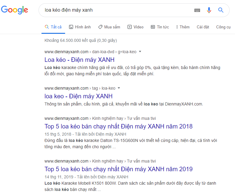 Các bạn có thể vào trang tìm kiếm Google tìm từ khóa " Loa kéo điện máy xanh" , mua loa kéo điện máy xanh, loa kéo xanh, các bạn sẽ thấy rất nhiều kết quả tìm kiếm hiện lên cho các bạn thấy.