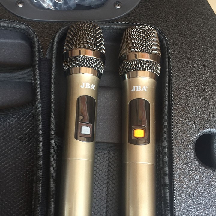 - Mặt trên loa có 2 lỗ để bỏ micro rất tiện lợi. Tuy nhiên, khi để micro lên thì bạn nhớ phải tắt micro để tránh phát ra tiếng gầm rú.