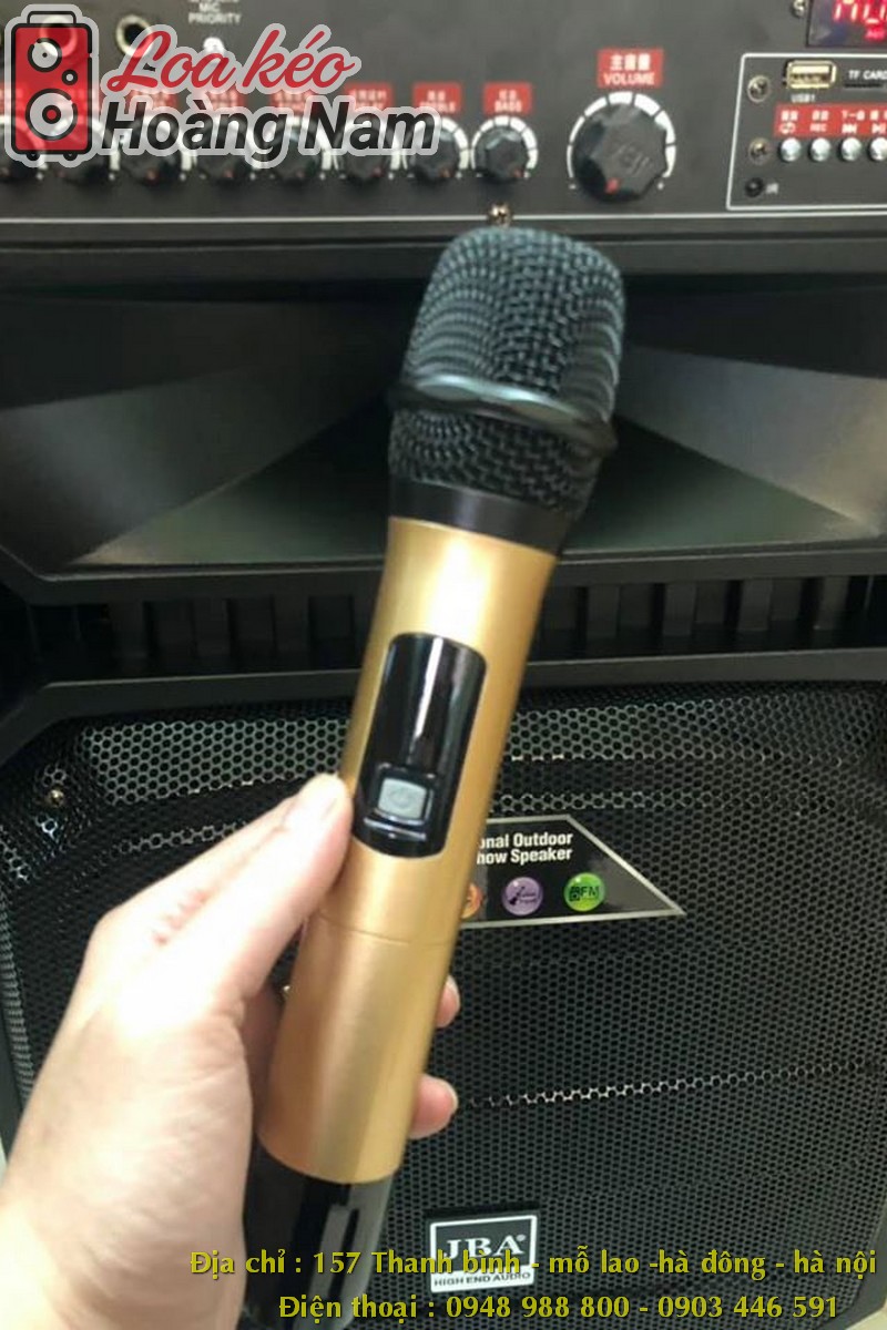 Đi kèm với loa kéo JBA J1507 là cặp micro không dây được kế khá bắt mắt với màu vàng đồng, cặp micro có độ nhạy cao, bắt âm tốt, giúp các bạn thoả mãn đam mê ca hát. Với thời lượng của ắc quy sử dụng từ 6-8 tiếng thì các bạn không phải lo lắng không sợ gián đoạn khi sử dụng. Ngoài ra loa kéo JBA J1507 còn có cổng kết nối với ắc quy 12V giúp các bạn kéo dài các cuộc vui chơi hơn.