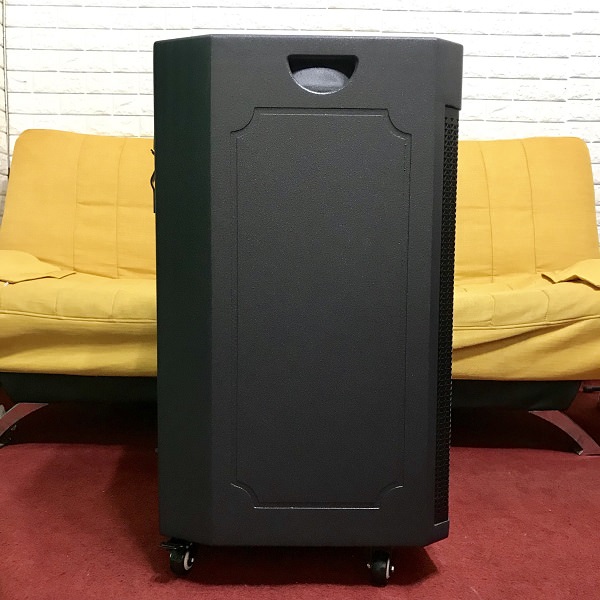 Loa kéo Temeisheng GD159 có thiết kế rất đẹp và hiện đại, lưới sắt được dập rất đẹp, hai cạnh bên của loa được " vạt chéo vào trong " nên nhìn phía trước loa có vẻ gọn hơn kích thước thật của nó, tay kéo không có nhưng thùng gỗ được " Khoét " sẵn những " Tay xách" , dưới đáy loa là 4 bánh xe , giúp loa di chuyển dễ dàng, loa này có trọng lượng tầm khoảng 30kg.