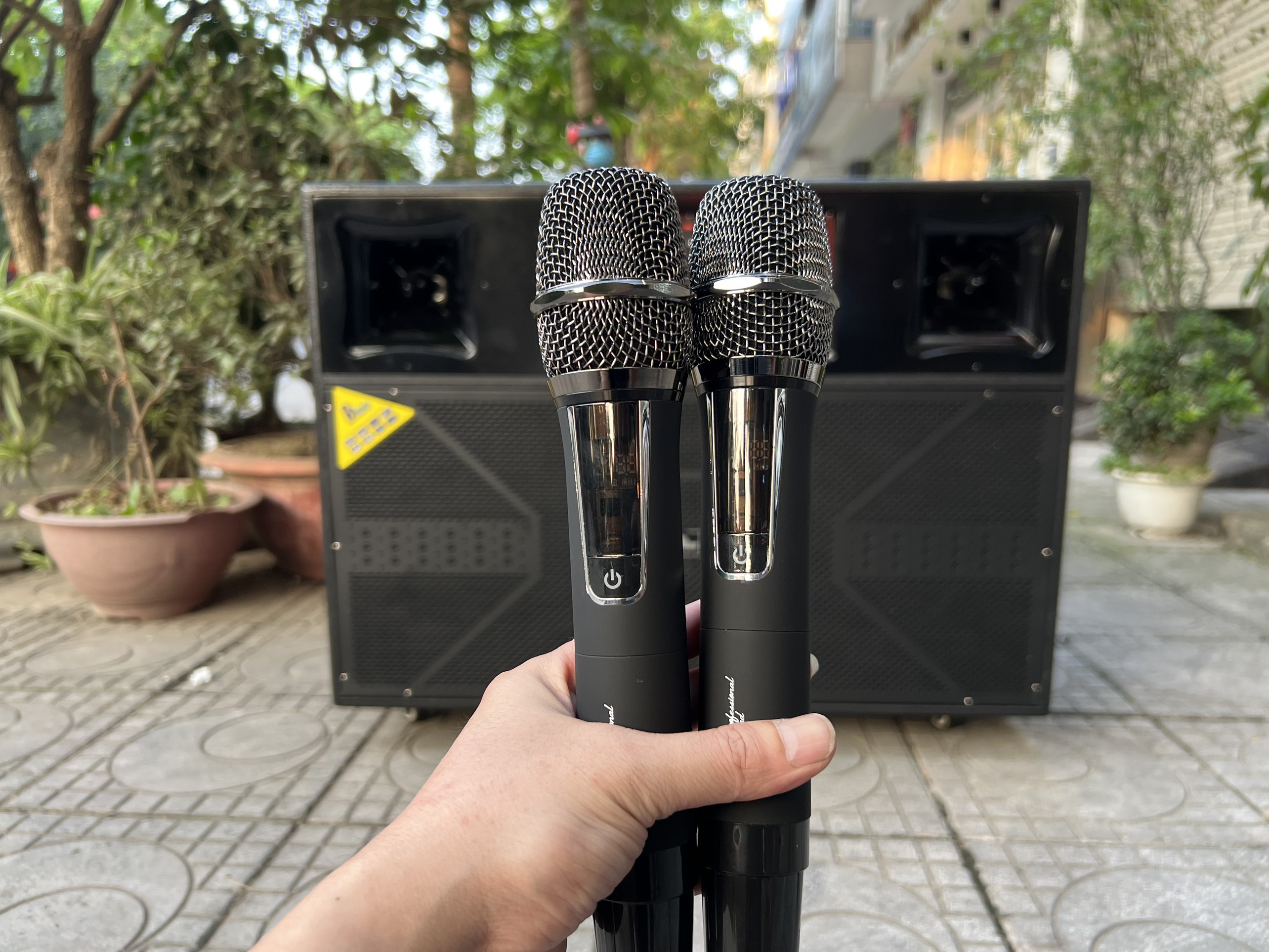 - Loa kèm 2 micro không dây