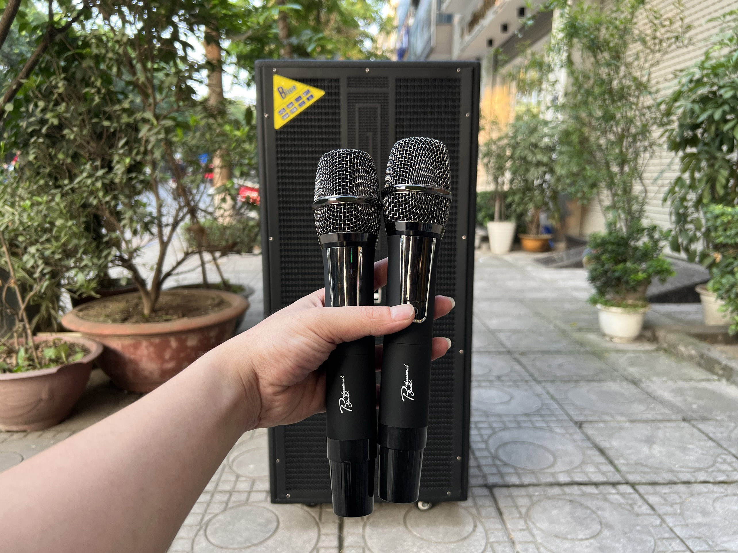 - Loa kèm 2 micro không dây