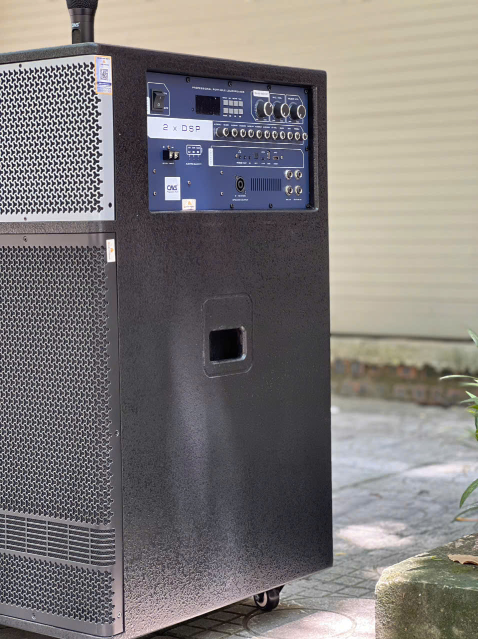 Hệ thống loa kép: trang bị 2 loa bass đường kính 50cm (18 inch), cho dải trầm sâu, chắc nịch, cực kỳ phù hợp cho nhạc dance, remix hoặc karaoke sôi động.