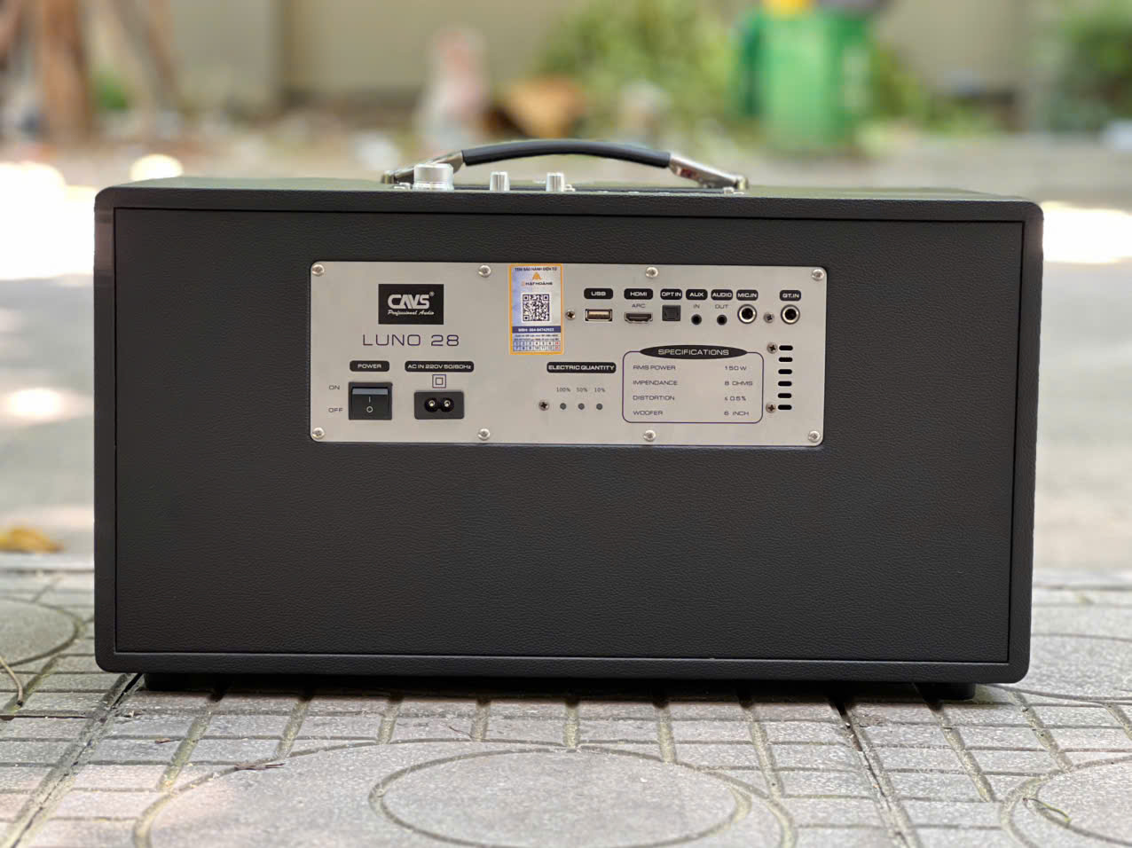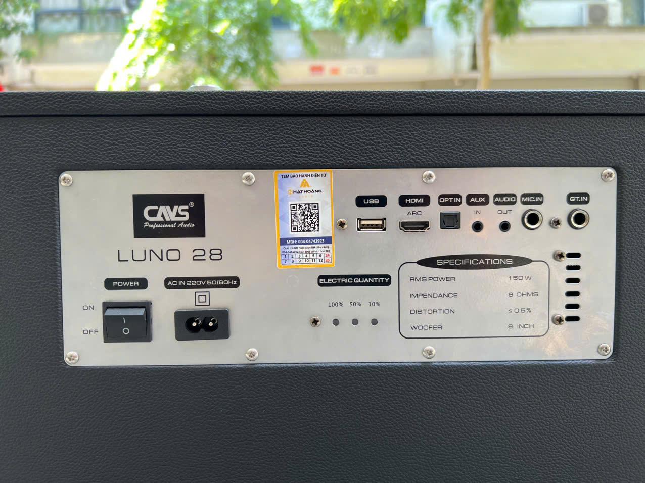 Được trang bị hệ thống loa 3 đường tiếng với loa bass đường kính 20cm, loa mid 10cm và loa treble chất lượng, CAVS Luno 28 mang đến âm trầm sâu, ấm áp, cùng dải cao trong trẻo, không chói tai. Công suất thực RMS khoảng 150W, đủ mạnh để đáp ứng nhu cầu giải trí trong không gian gia đình, quán café, phòng tập hoặc sân khấu nhỏ.